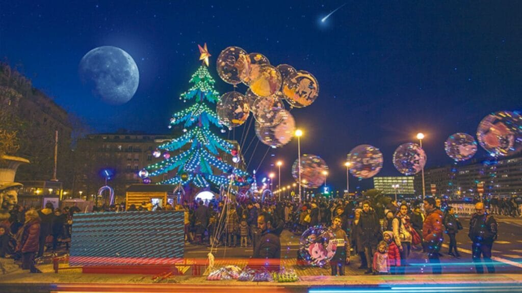 La antigua «Capital Europea de la Navidad» (2022) destaca por su noria espectacular y su mercadillo que va desde el paseo del Urumea hasta la plaza Santa Catalina, con una cuidada selección de puestos de regalo. Del 28 de noviembre al 6 de enero de 2026.